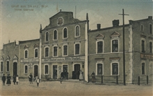Na pocztówce widzimy Hotel Czarny Orzeł (Schwarzer Adler), którego właścicielem był O. Wiartalla. Dzisiejsza ulica Hallera (dawniej Bahnhofstrasse).