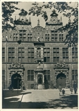 Widok na Wielką Zbrojownie z ulicy Piwnej (Jopengasse). Na pierwszym planie zdjęcia znajdują się typowe dla Gdańska przedproża.