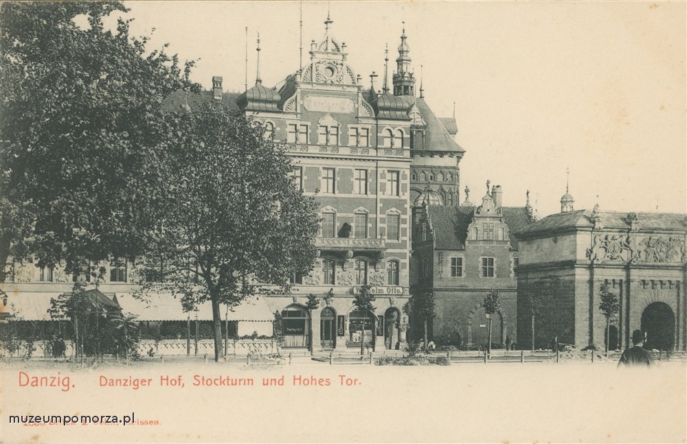 Danziger Hof - hotel zbudowany w r. 1898, w sąsiedztwie Zespołu Przedbramia, najbardziej luksusowy hotel w mieście. Pocztówka wydana przed 1905 r.