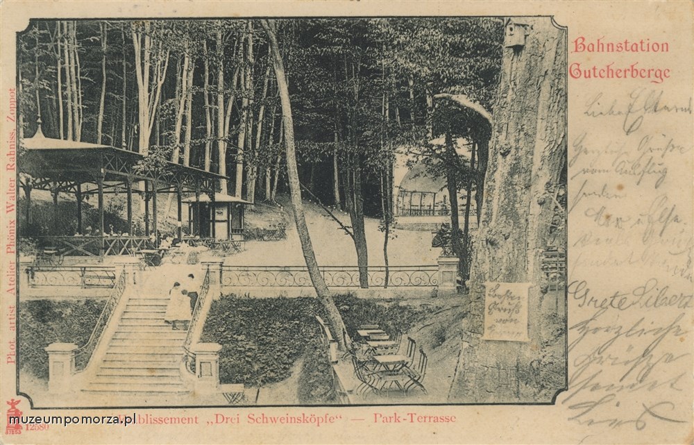 Na górze po lewej stronie klub rozrywkowy Schleusnera, znajdował się na ul. Osadników Wojskowych. Na górze po prawej stronie budynek apteki, po wojnie mieściła się tam restauracja "Pod Kasztanami ", obecnie nie istnieje. Na dole cukrownia wzniesiona w 1884 roku, obecnie ul Macieja Płażyńskiego. Niektóre budynki się zachowały.