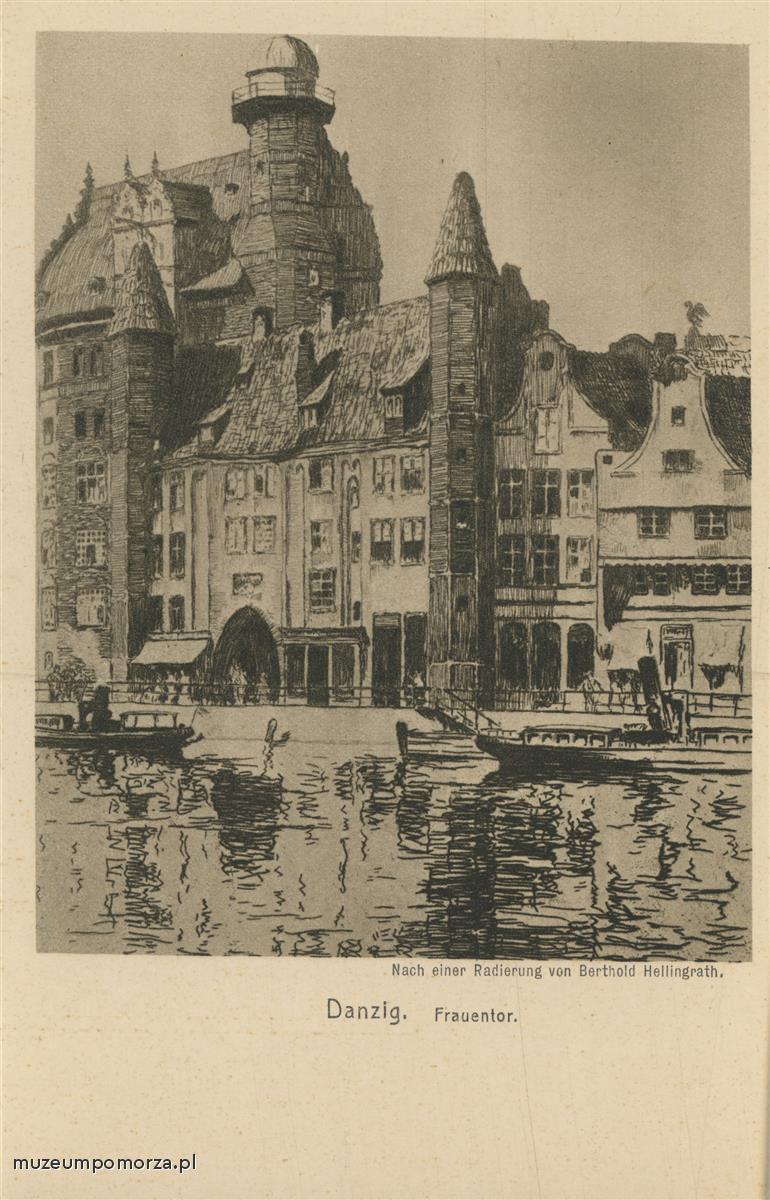 Pocztówka pochodzi z albumu "Danzig. Nach einer Radierung vn Berthold Hellingrath" zawierającego 10 pocztówek, będących przedrukiem akwafort znanego malarza (związanego z Gdańskiem) Bertholda Hellingratha.